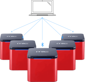 - 藍牙無線連結,擴充性高,最多可一次連接 10 台 Mic,同時進行 480 個反應。