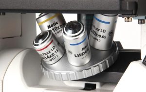 - 可安裝五種不同倍率的物鏡,且影像分析軟體可自動辨識及顯示所選物鏡編碼與倍率,簡化影像追蹤流程並提高工作效率。